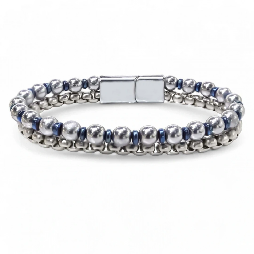 Moncuk Design Çelik Zincirli Gümüş Ve Mavi Hematit Bileklik 33512B21D3