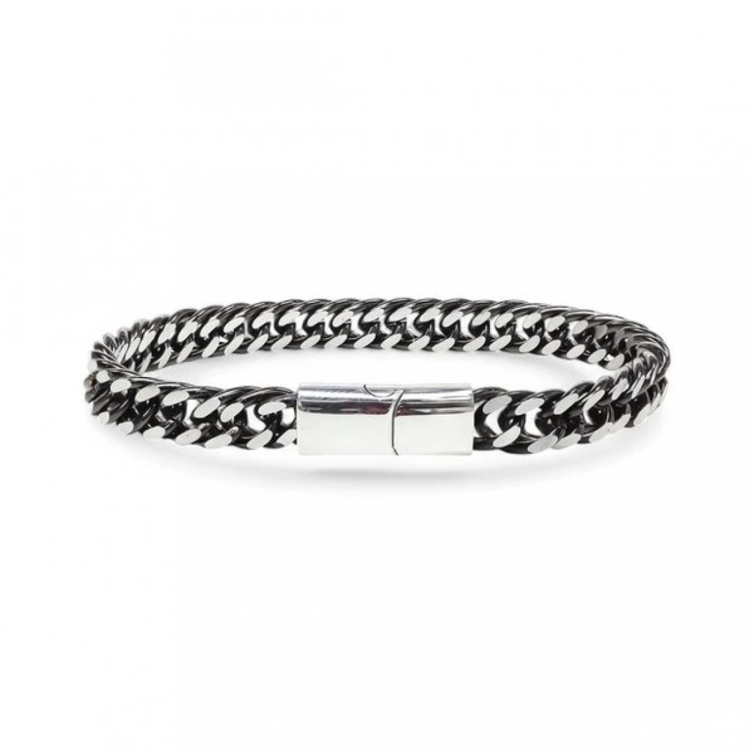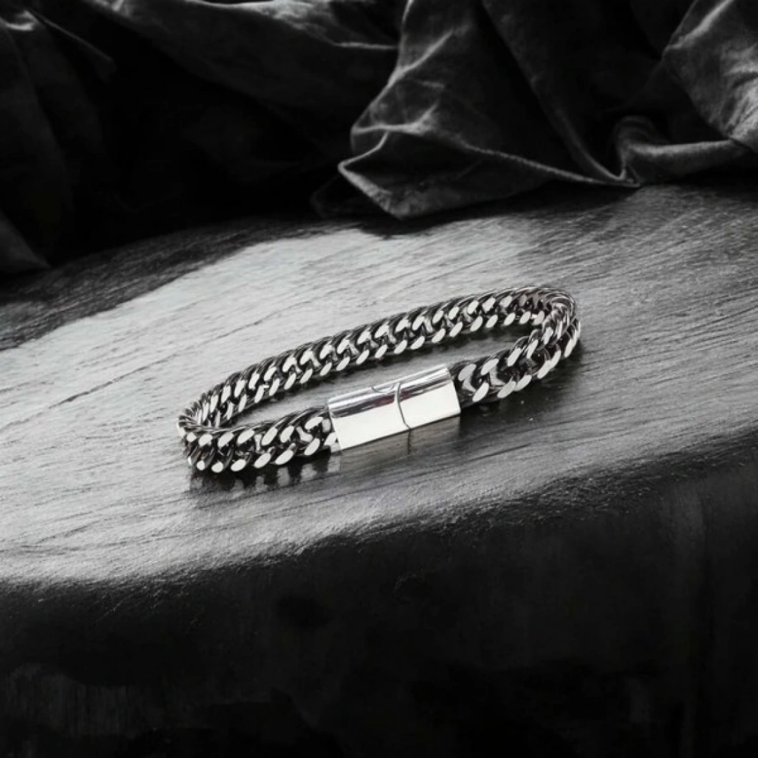 Çift sıra otantik çelik zincir bileklik, gücün, otoritenin ve zamansız şıklığın simgesidir. Otantik tasarımıyla maskülen enerjinizi en etkili şekilde yansıtırken, modern detaylarıyla da stilinizi lüks bir seviyeye taşır. Her ortamda karizmatik bir duruş sergilemenizi sağlayacak bu özel tasarım, yalnızca bileğinizde taşıdığınız bir aksesuar değil; kimliğinizin, gücünüzün ve özgüveninizin bir yansımasıdır. Kaliteden ve şıklıktan ödün vermeyen erkekler için kusursuz bir seçimdir.