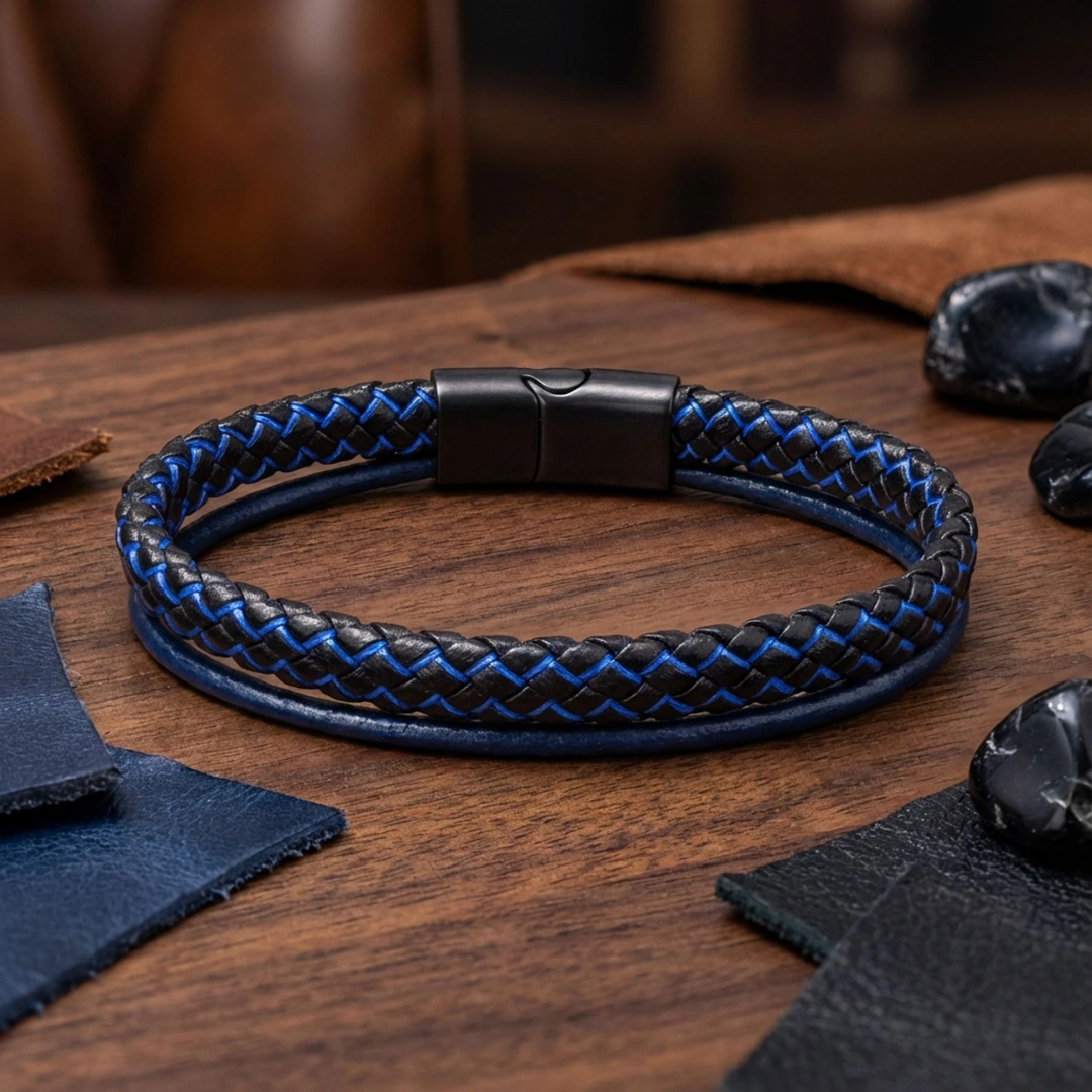 Her detayı özenle hazırlanmış bu mavi çoklu deri bileklik, maskülenliğin, gücün ve sofistike şıklığın modern bir ifadesidir. Derinin doğal dokusu, metal detayların sağlamlığı ve mavinin huzur veren enerjisiyle birleşerek, stilinize lüks bir ayrıcalık katar. İster günlük yaşamda ister özel anlarda, her ortamda farkınızı ortaya koyacak bu özel tasarım, karakterinizi en etkileyici şekilde yansıtacaktır. Bu bileklik, yaşamınıza hem estetik hem de manevi anlamda değer katan seçkin bir tercih olacaktır.