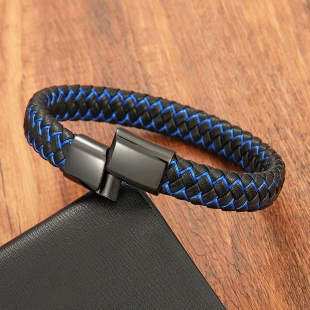 Maskülen stilin güçlü bir yansıması olan bu mavi-siyah deri örgü ve çelik bileklik, hayat kalitenizi yükseltecek ayrıcalıklı bir aksesuardır. Günlük yaşamda, iş hayatında veya özel davetlerde rahatlıkla tercih edilebilecek bu bileklik, tarzınıza güçlü ve sofistike bir dokunuş yapar. Lüksü hayatının ayrılmaz bir parçası haline getirmek isteyen erkekler için ideal bir seçimdir. Estetik görünümünün ötesinde, bileklik renklerin taşıdığı spiritüel anlamlarla da dikkat çeker. Siyahın güçlü ve koruyucu enerjisi, mavinin huzur veren ve dengeleyici etkisiyle birleşerek, kullanıcısına hem dış görünüşte sofistike bir şıklık hem de içsel bir dinginlik sunar. Bu nedenle bileklik, yalnızca şık bir aksesuar değil, aynı zamanda ruhsal anlamda da destekleyici bir parça olarak öne çıkar.