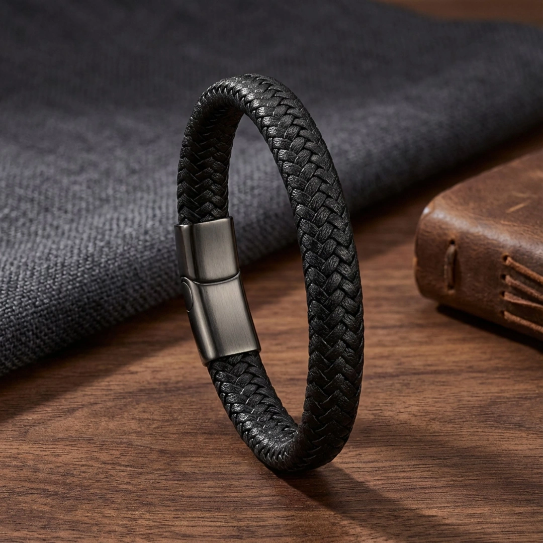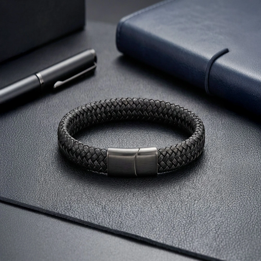 Her detayıyla özenle hazırlanmış bu siyah çelik ve deri örgü bileklik, maskülenliğin, gücün ve zarafetin modern bir yansımasıdır. Karizmatik duruşuyla tarzınıza sofistike bir dokunuş yaparken, kalitesi ve dayanıklılığıyla uzun yıllar boyunca yanınızda olacak seçkin bir parçadır. Günlük kullanımda ya da özel anlarda, stilinizi güçlendirecek ve lüks bir ayrıcalık sunacak bu bileklik, modern erkek stilinin vazgeçilmez tamamlayıcısıdır.