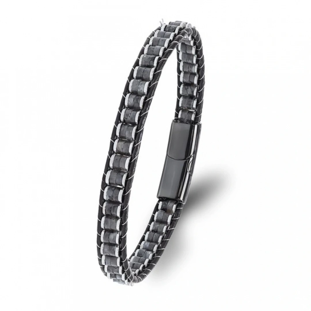 Kullanılan Malzeme Bu bileklik, yüksek estetik ile ruhsal anlamı harmanlayan malzemelerle tasarlandı: 316L Paslanmaz Çelik Halat & Klips – Korozyona ve çizilmelere karşı dayanıklı; maskülen zarafete eşlik eden sağlam bir temel sağlar. Spectrolit Taşlar – Labraidoresans etkisiyle gökkuşağının tüm renklerini yansıtır; içsel enerjiyi tetikler, ruhun frekansını yükseltir. Hematit Taşlar – Metalik gri tonu ile zihinsel netlik, enerji dengeleme ve koruma sağlar; stiline sakin ama güçlü bir aura ekler. Deri Örgü Detayı – Doğal ve dokunsal bir zenginlik katar; enerjilerle uyum içinde stil ve his arasında zarif bir köprü kurar. Özenle Dizilmiş Kompozisyon – Her taş ve materyal, enerjilerin ritmeli dansını destekleyecek biçimde özenle konumlandırılmıştır. Bu bileklik, sadece görünür şıklık değil, enerjisel bir hikâyeyi yansıtan bir sanat eseridir.