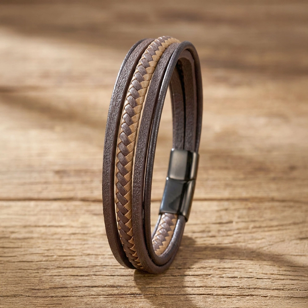 Güç, Zarafet ve Derin Duruş Hayatına yalnızca bir aksesuar değil, aynı zamanda maskülen kimliğini ve zarif duruşunu yansıtan bir imza katmak ister misin? Taba kahve tonlarının büyüleyici uyumuyla tasarlanan çoklu deri bileklik, modern erkeğin hem karizmatik hem de lüks algısını güçlendiren eşsiz bir tamamlayıcıdır. Bu özel tasarım, bileğinde taşıdığında sana yalnızca estetik bir görünüm değil, aynı zamanda ruhunu besleyen ve özgüvenini yücelten bir değer sunar.