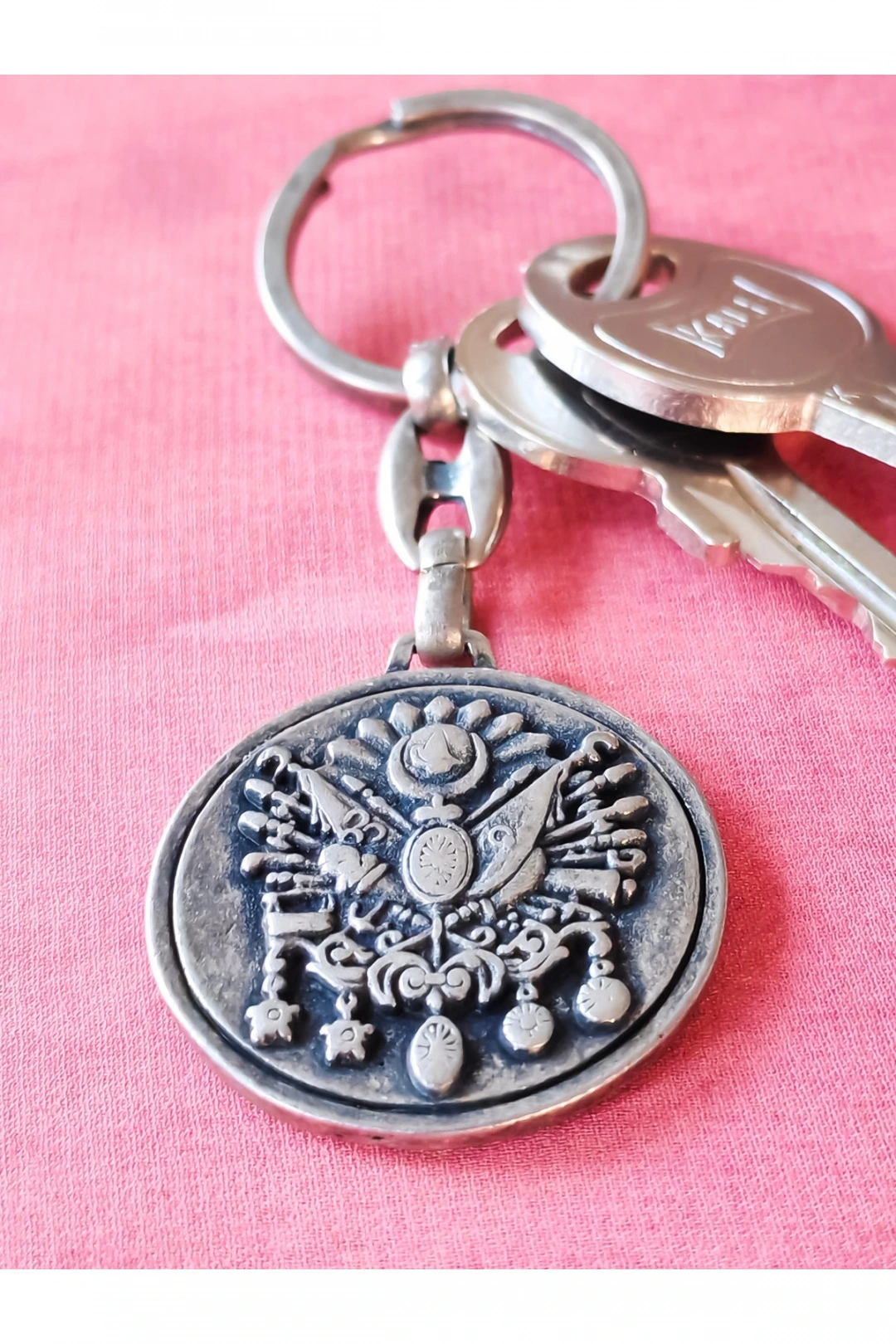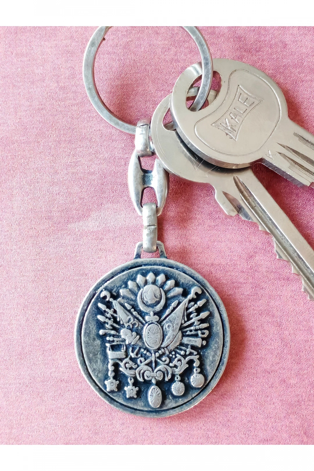 Osmanlı İmparatorluğu’nun ihtişamını ve derin kültürel mirasını simgeleyen tuğra motifiyle tasarlanmış bu metal anahtarlık, zarif işçiliği ve güçlü duruşuyla dikkat çekiyor. Detaylı kabartma tuğra deseniyle tarih ve estetik bir araya geliyor.