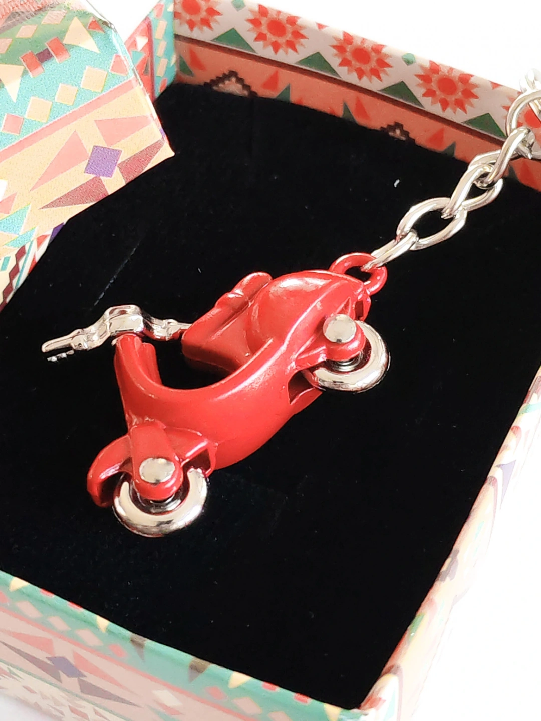 Oynar Gidonlu Kırmızı Scooter Metal Anahtarlık – Eğlenceli ve Dinamik Tasarım