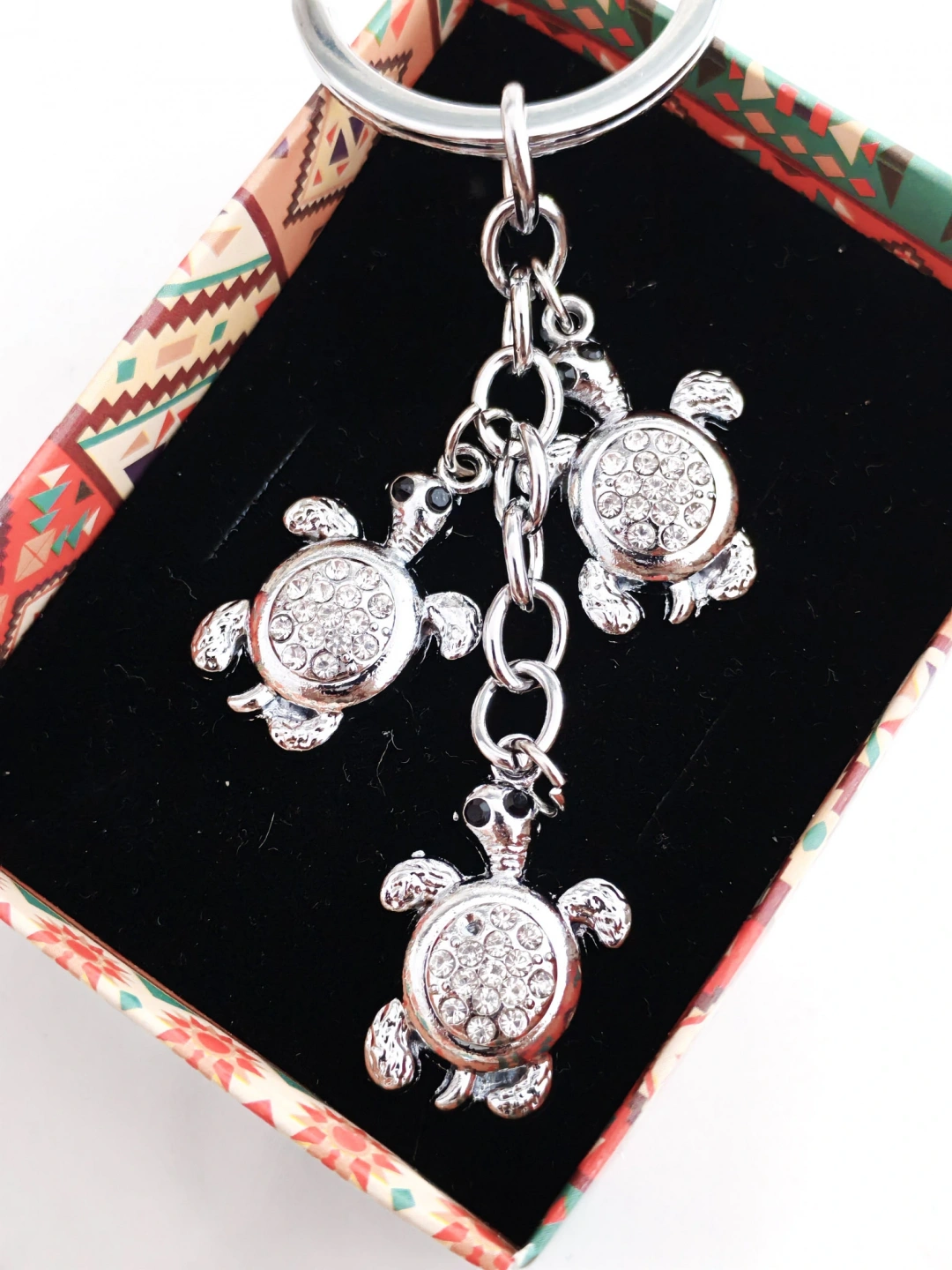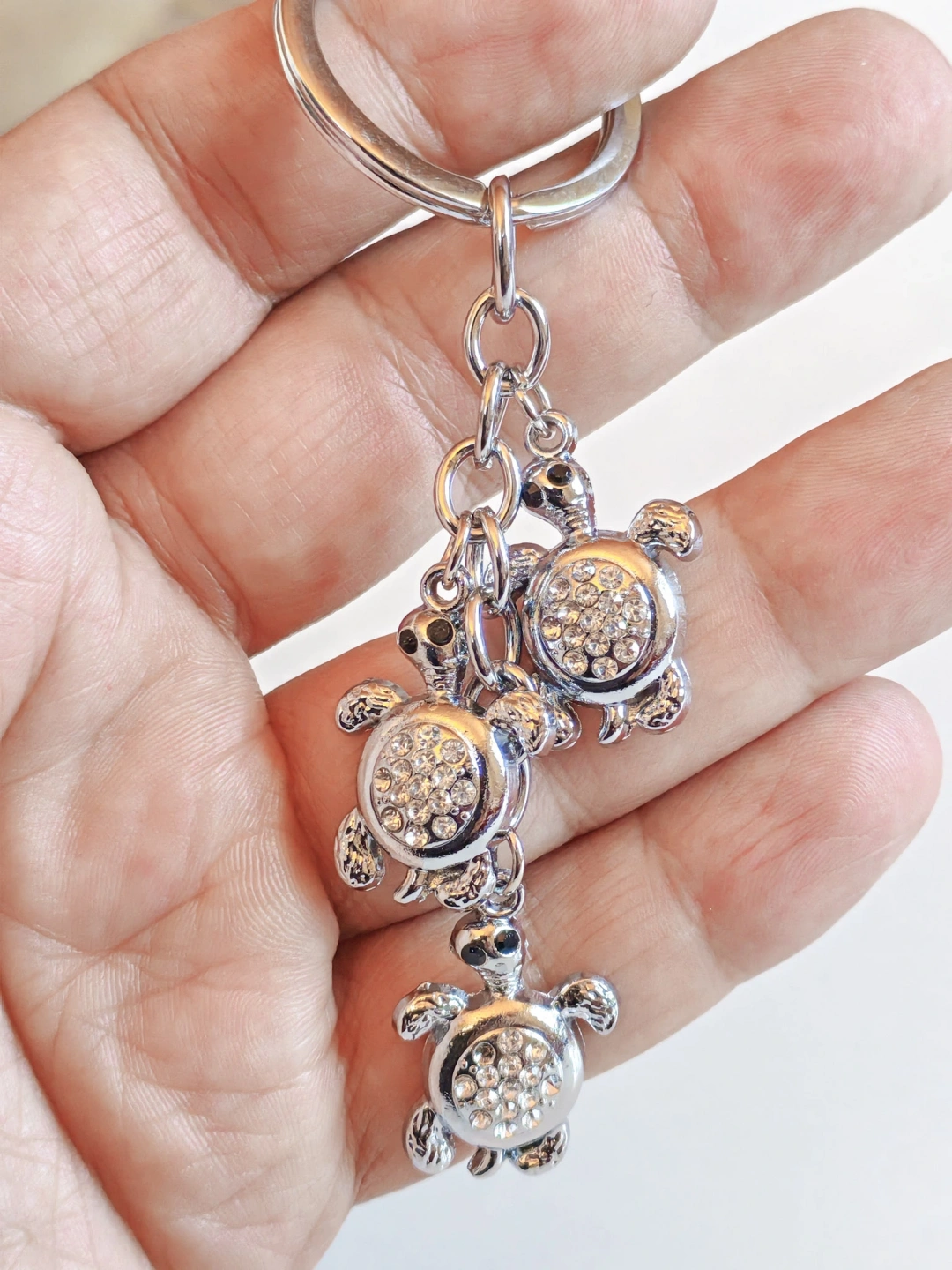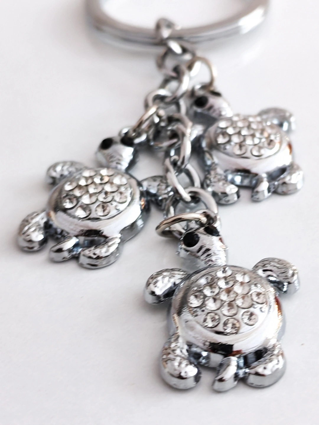 Gümüş Renkli Kaplumbağalar Metal Anahtarlık – Bereket, Uzun Ömür ve Şansın Zarif Temsili