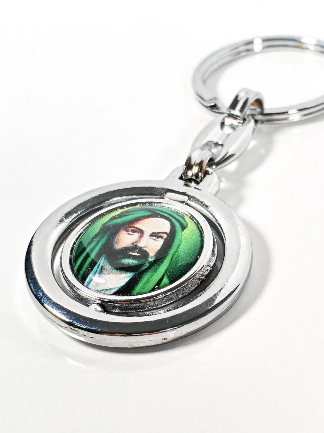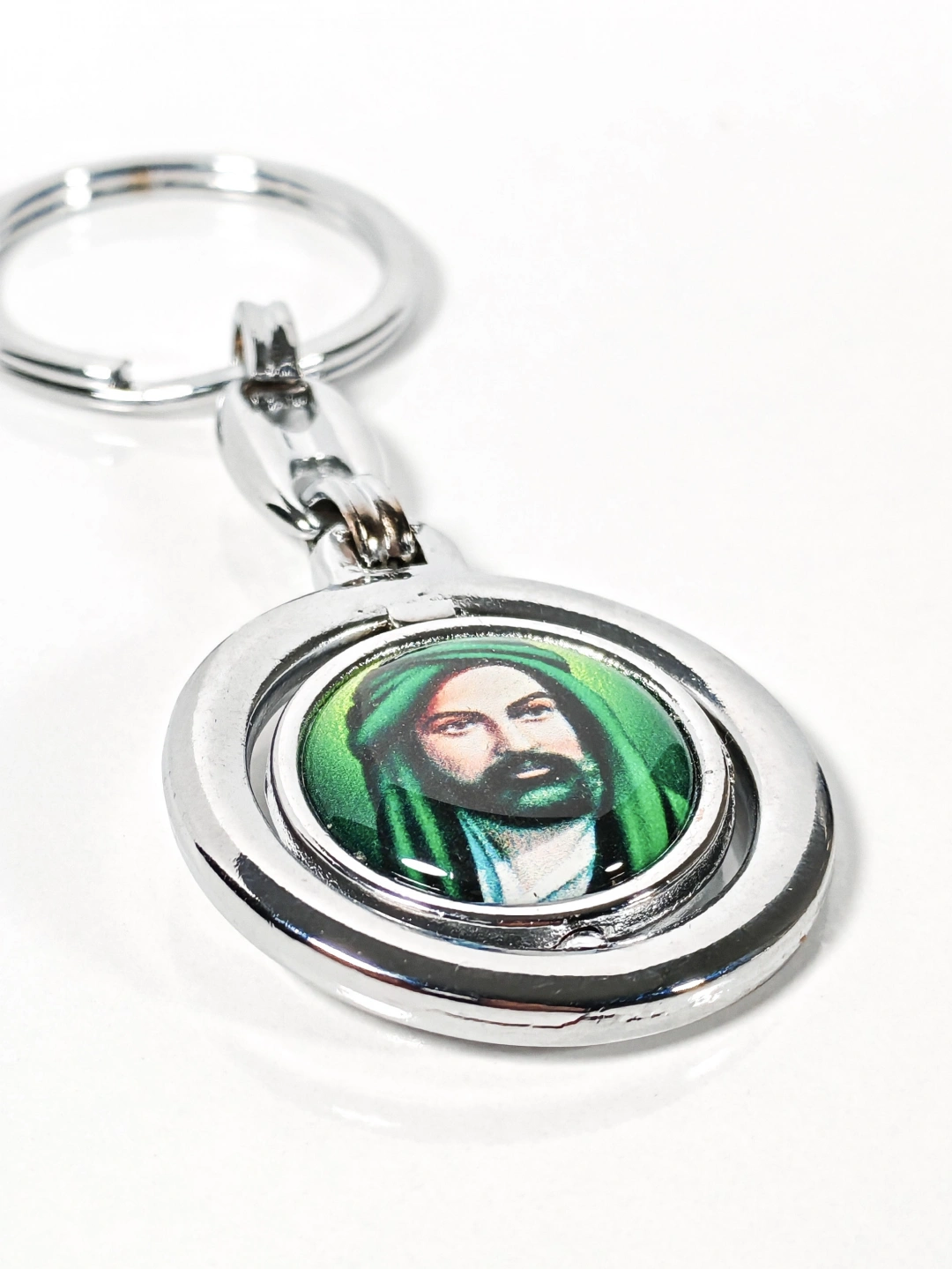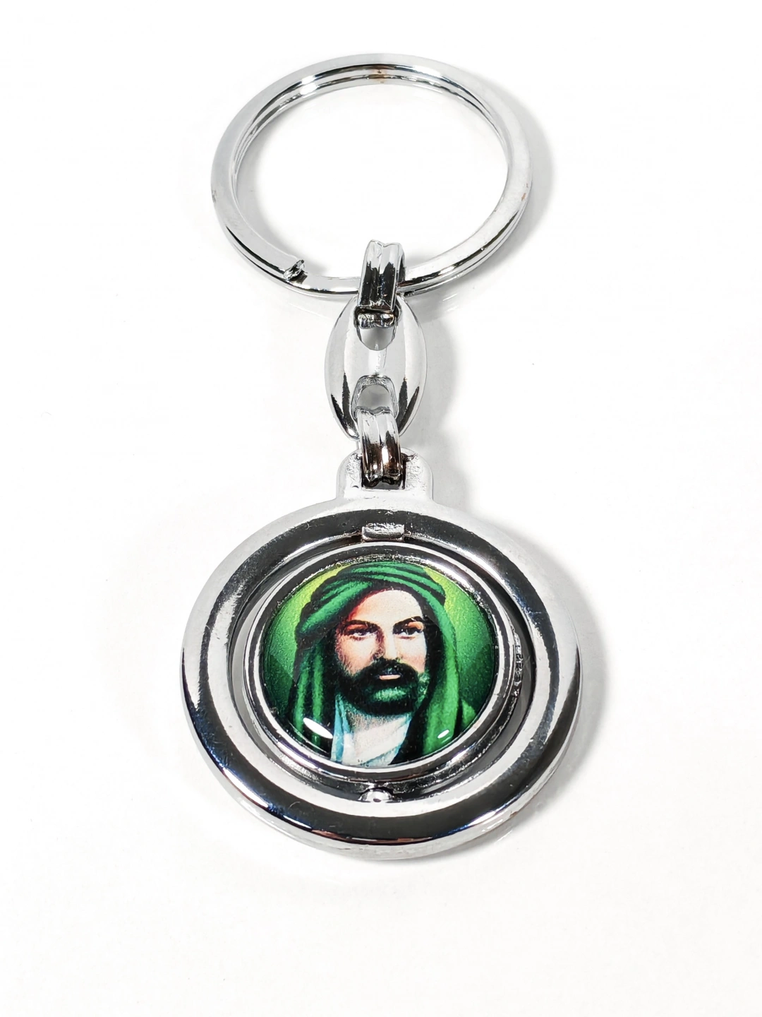 Hz. Ali Figürlü Yuvarlak Metal Anahtarlık – Manevi Anlam ve Zarif Detayların Birleşimi