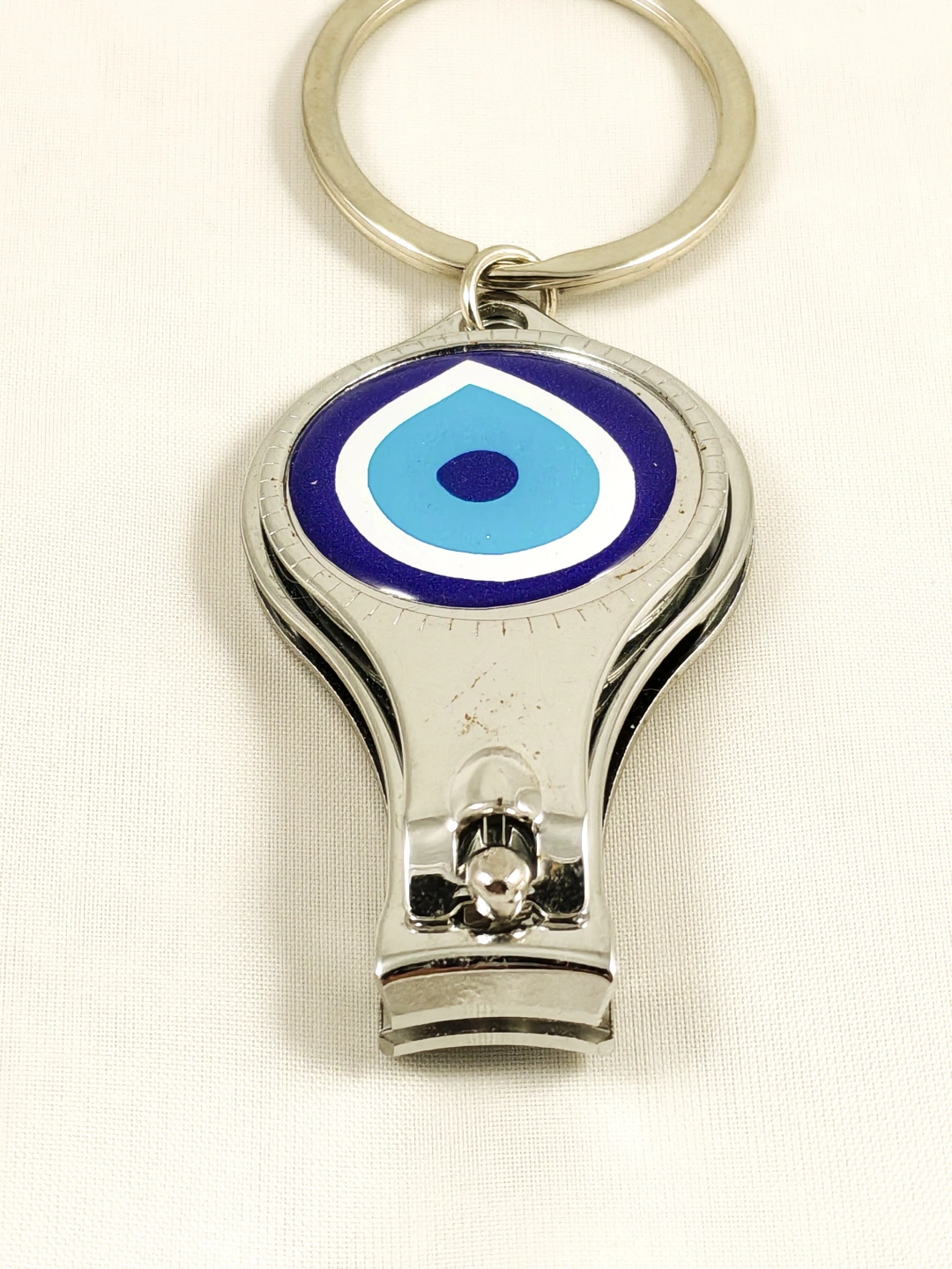 Dayanıklı metal malzemeden üretilen bu anahtarlık, uzun ömürlü kullanım sunar. Kompakt yapısı sayesinde anahtarlarınızda, çantanızda veya cebinizde rahatlıkla taşınabilir. Tırnak makası özelliği sayesinde ihtiyaç anında pratik bir çözüm sunarken, nazar boncuğu deseni ürüne estetik ve manevi bir değer katar.