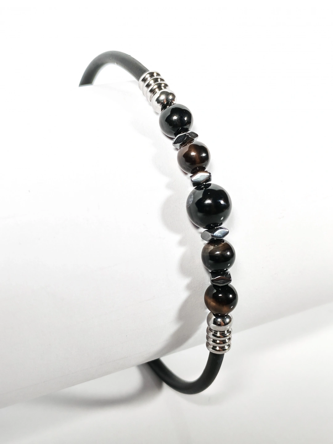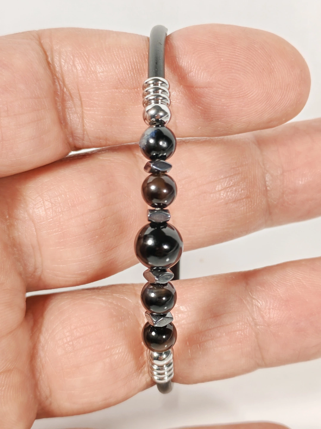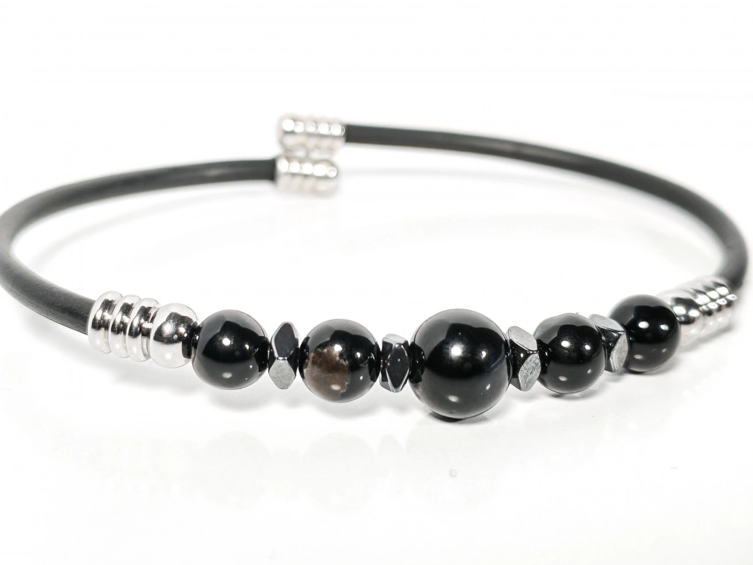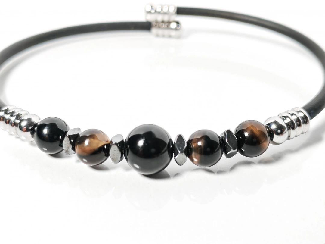 Siyah Akik Taşlı Yaylı Bileklik – Güç, Denge ve Stres Azaltıcı Enerji