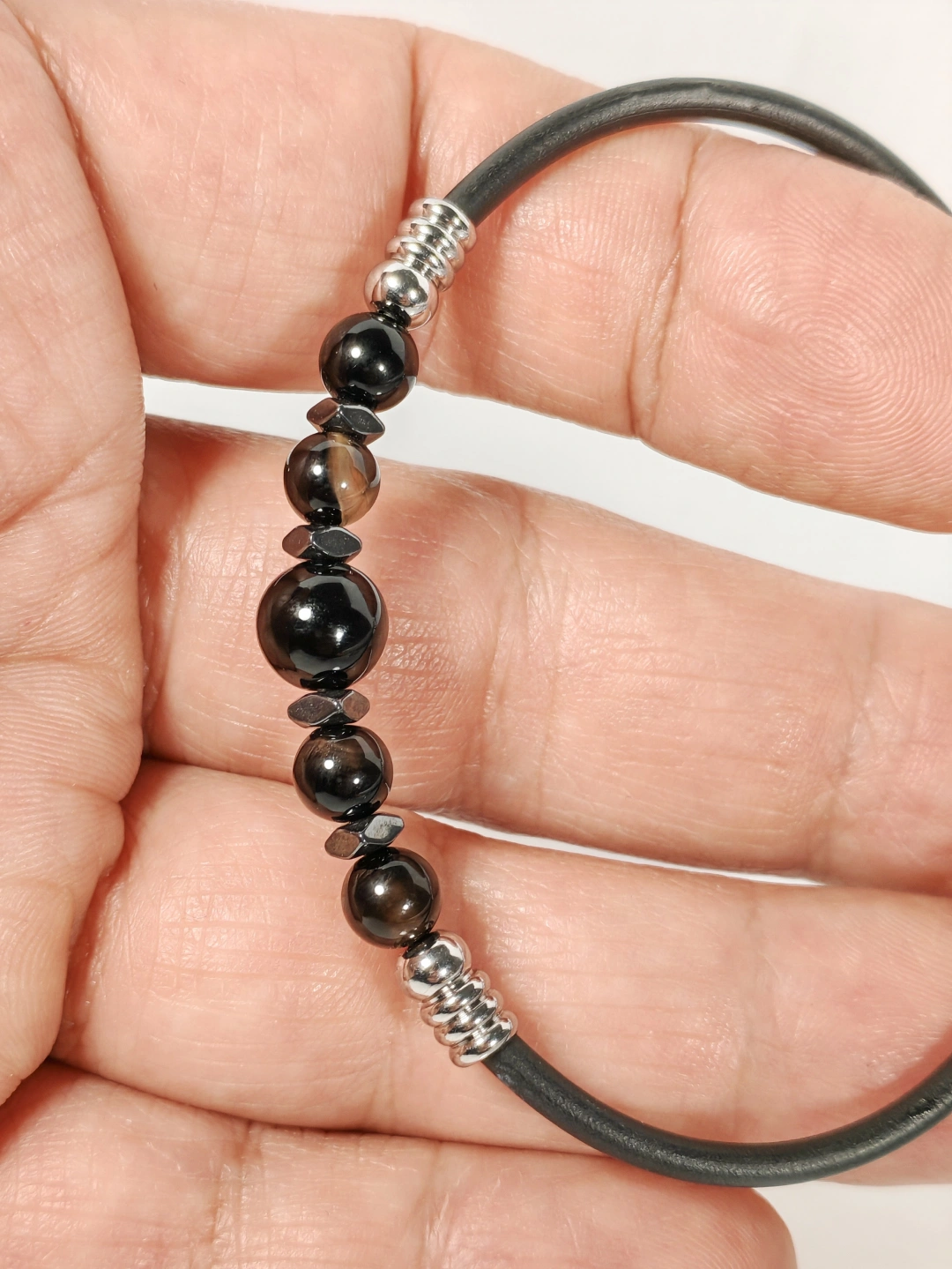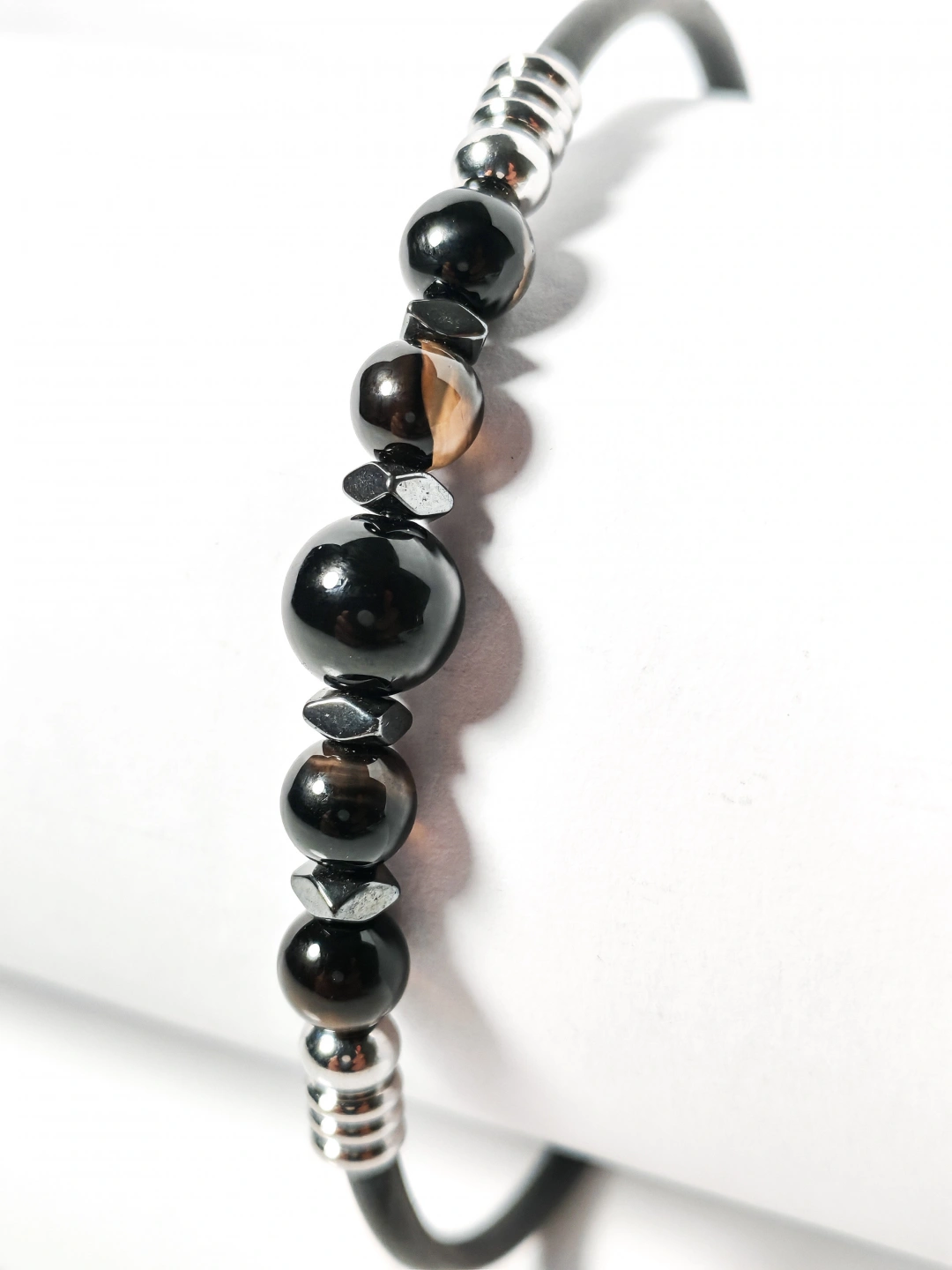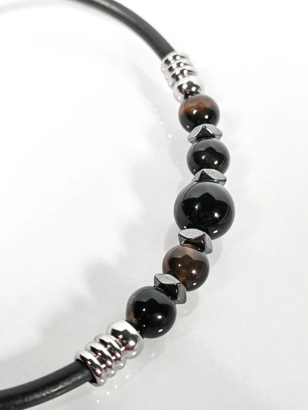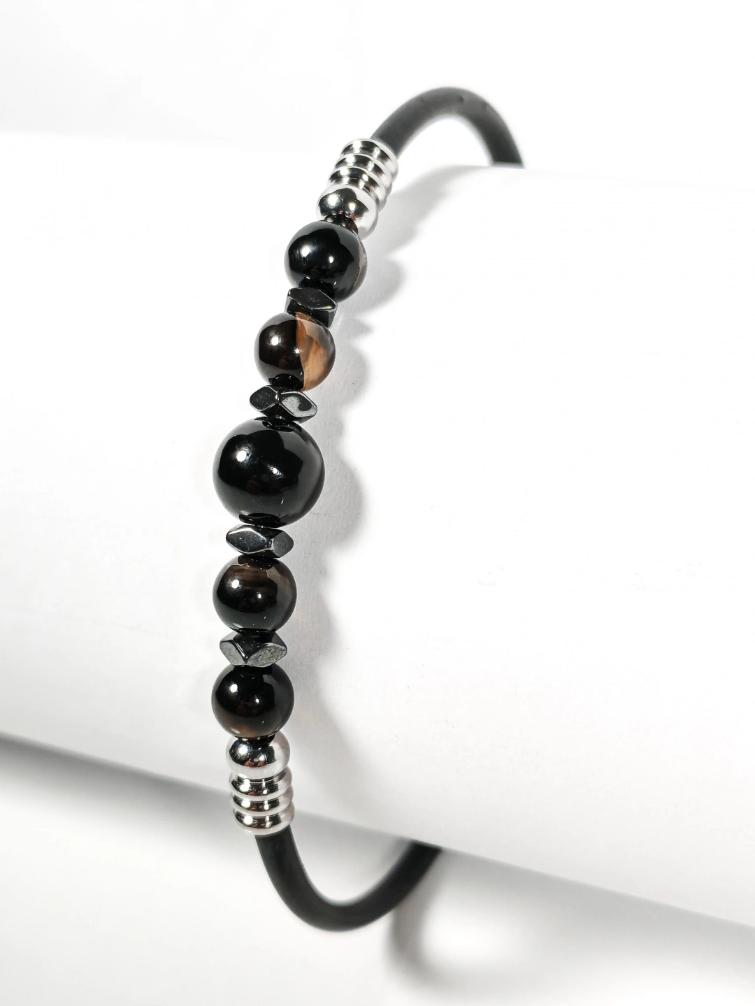 Siyah Akik Taşlı Yaylı Bileklik – Güç, Denge ve Stres Azaltıcı Enerji