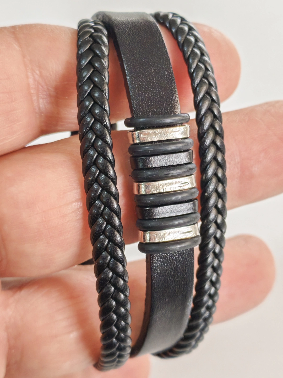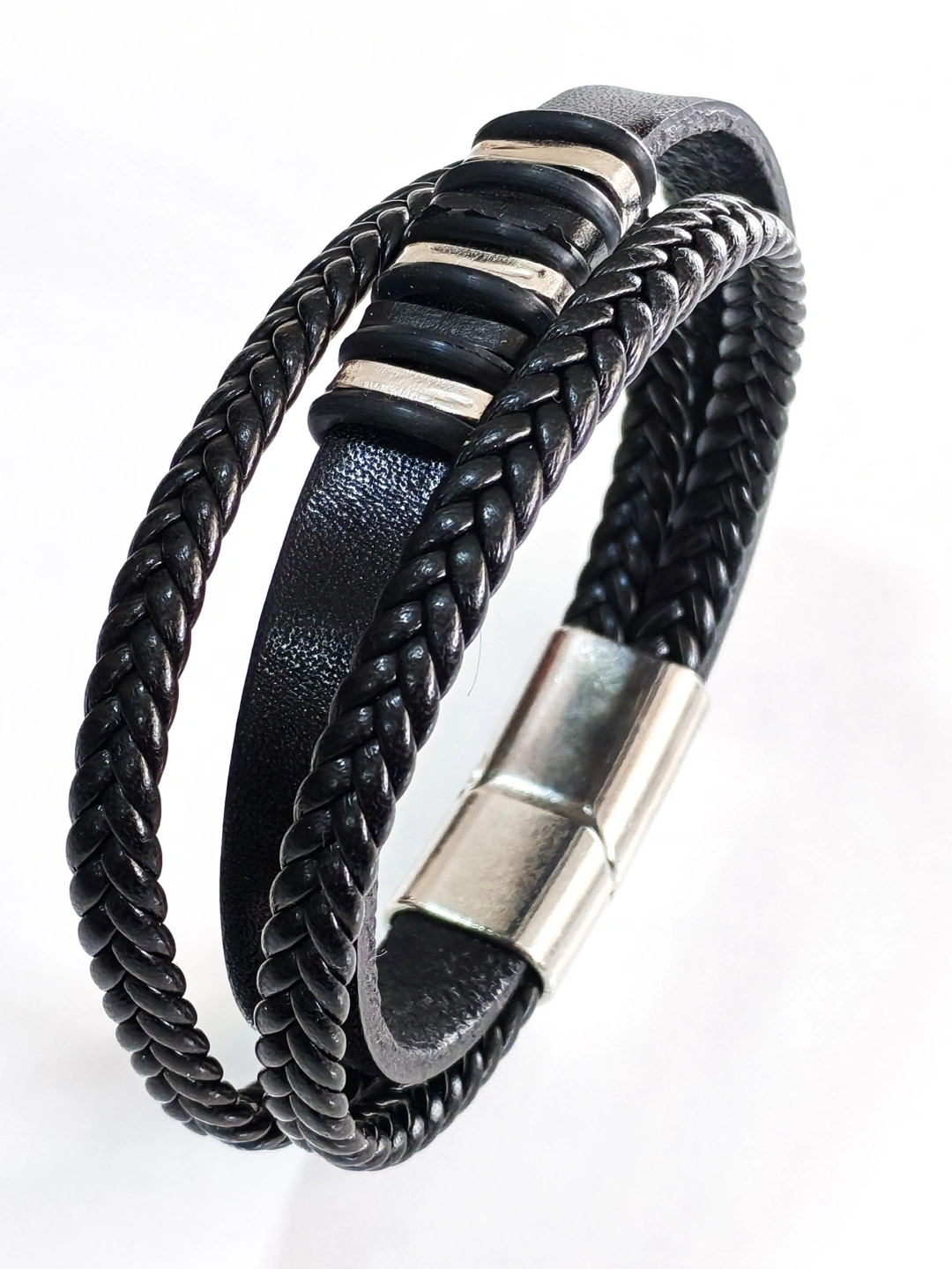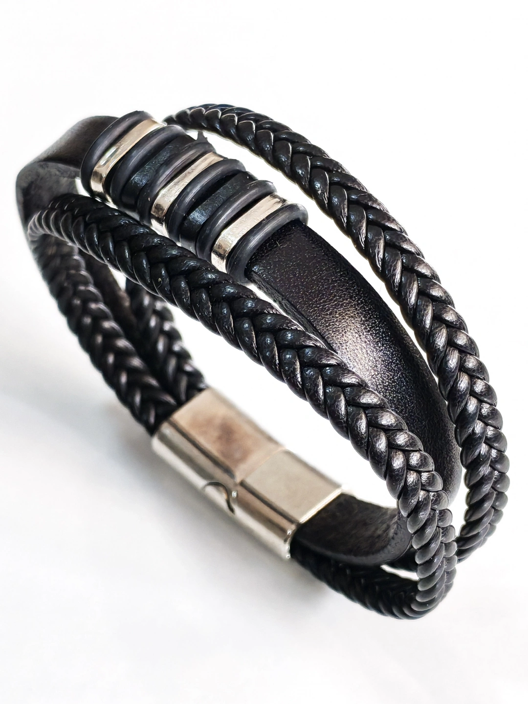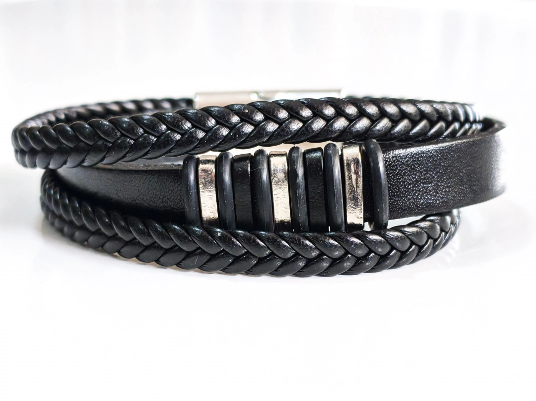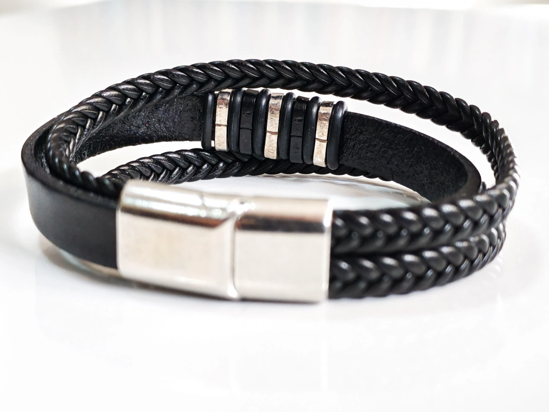 Siyah Deri Erkek Bileklik – Sevgililer Günü Hediyesi | Zamansız Şıklık, Güçlü Duruş ve Maskülen Zarafet