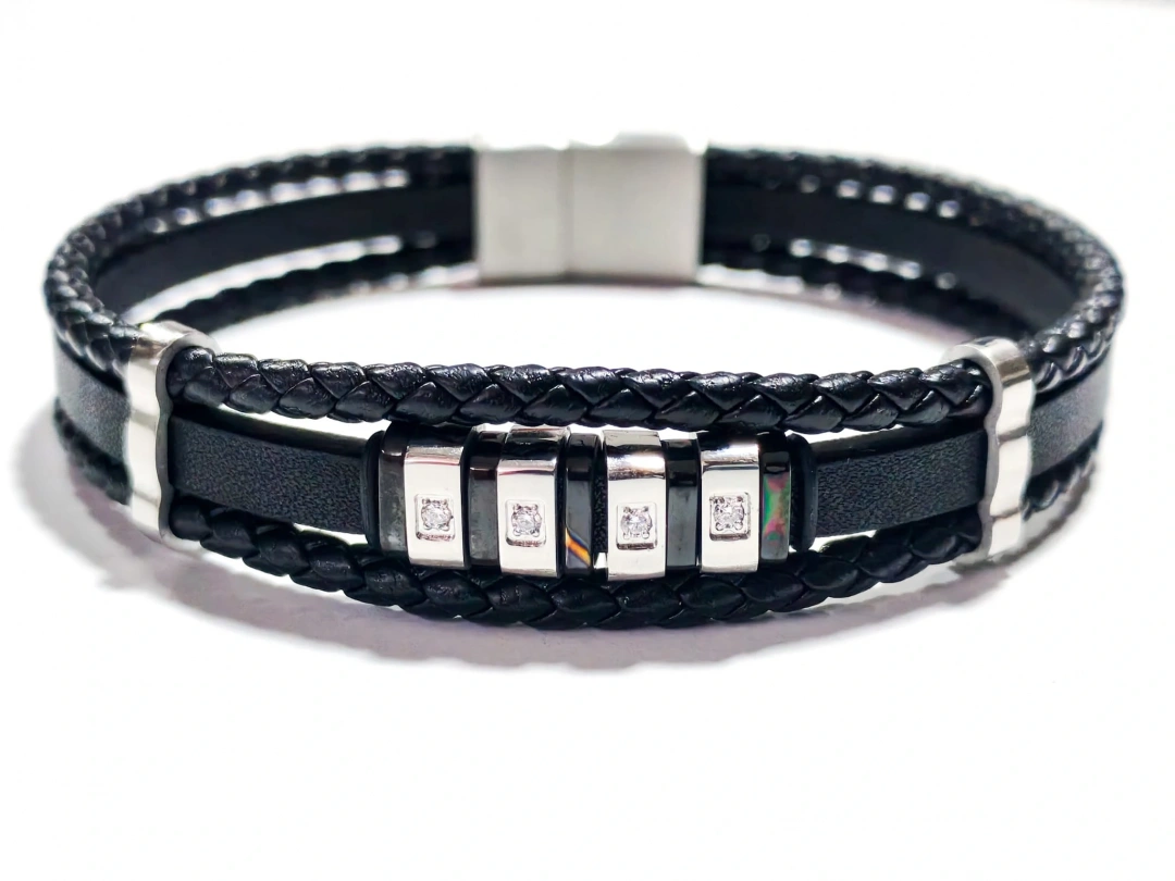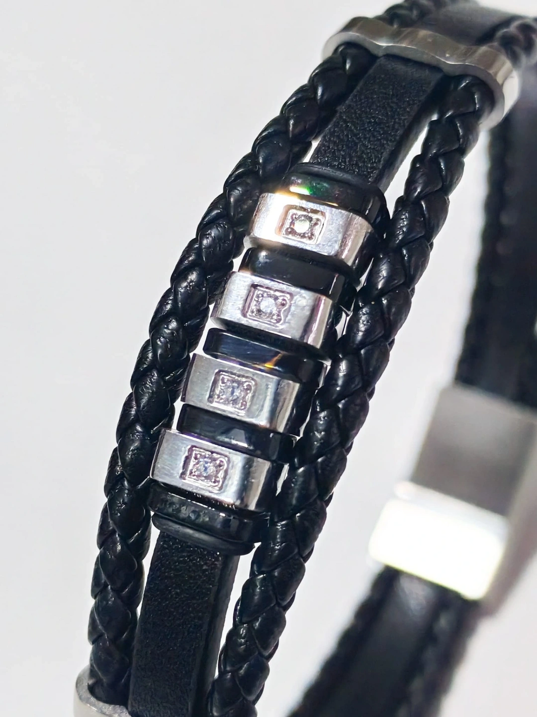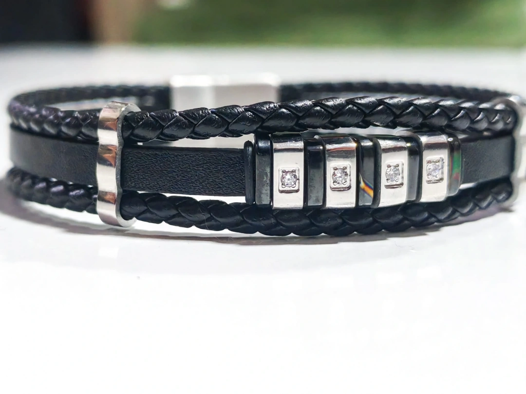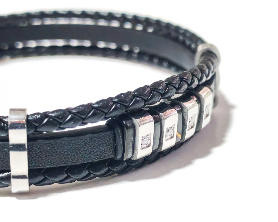 Siyah Deri ve Çelik Erkek Bileklik – Maskülen Gücün ve Modern Şıklığın Kusursuz Uyumu