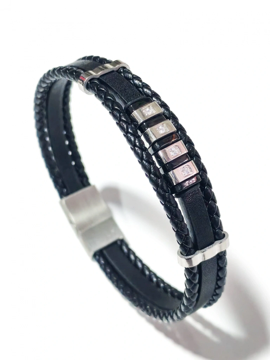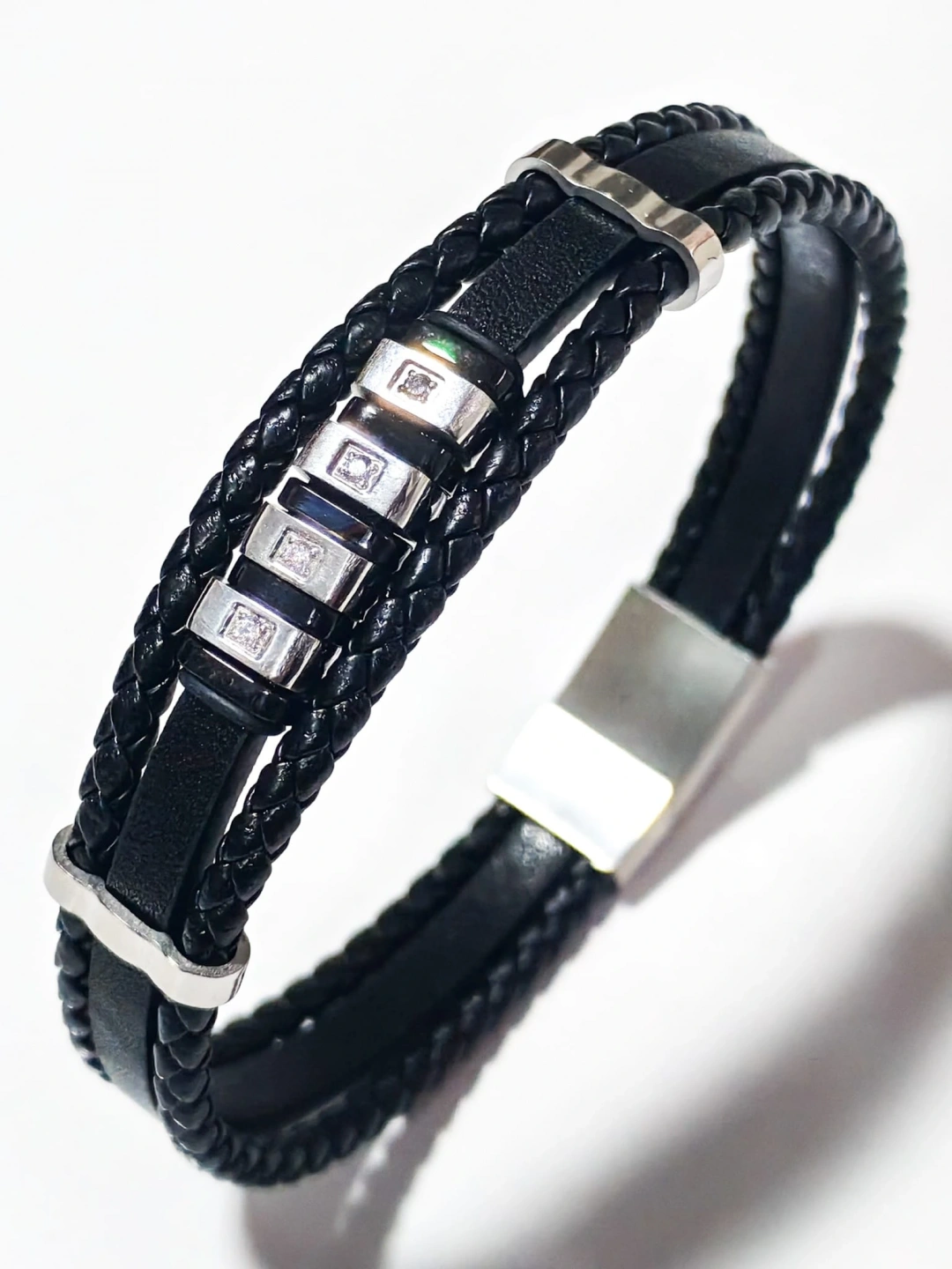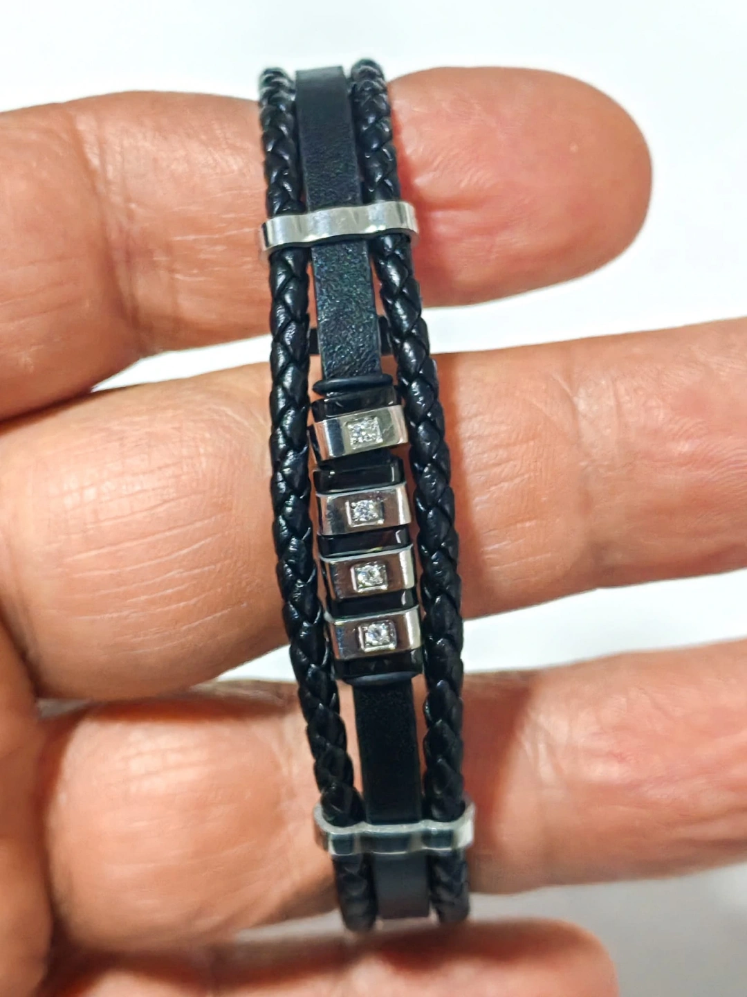 Siyah Deri ve Çelik Erkek Bileklik – Maskülen Gücün ve Modern Şıklığın Kusursuz Uyumu