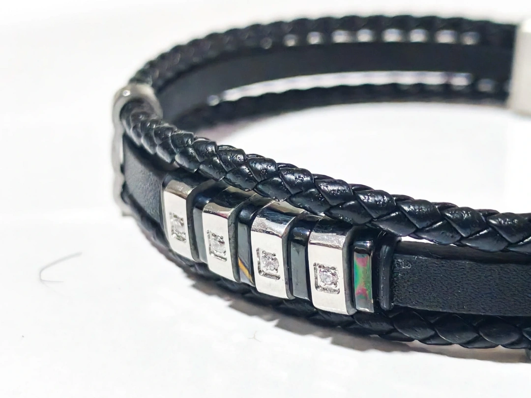 Dayanıklı deri ve paslanmaz çelik malzemelerle üretilen bu bileklik, uzun ömürlü kullanım sunar. Ergonomik yapısı sayesinde bilekte rahat bir duruş sağlar ve gün boyu konforlu kullanım imkânı verir. Günlük, casual ve klasik kombinlerle kolayca uyum sağlayarak stilinizi tamamlayan güçlü bir aksesuar haline gelir.
