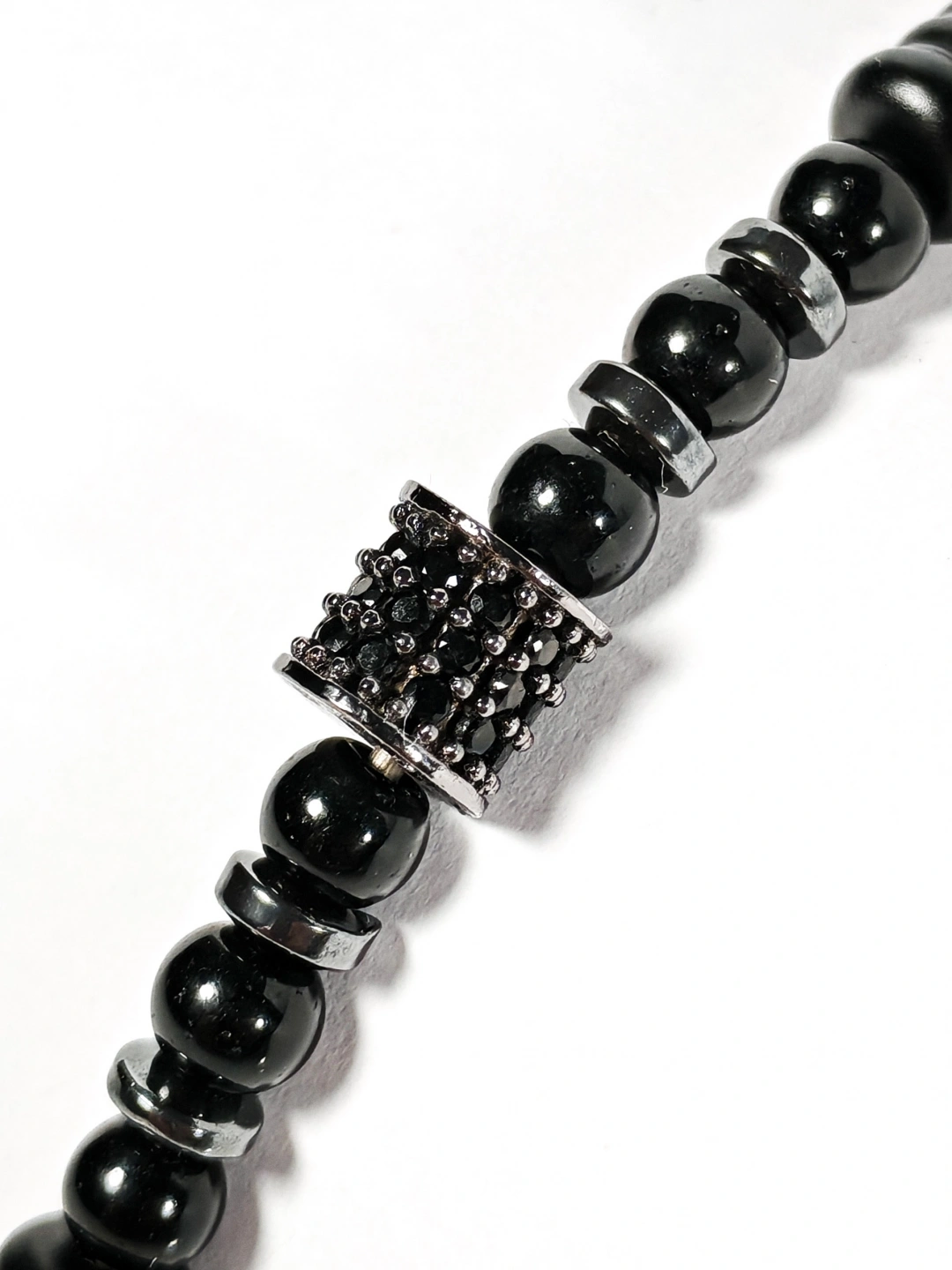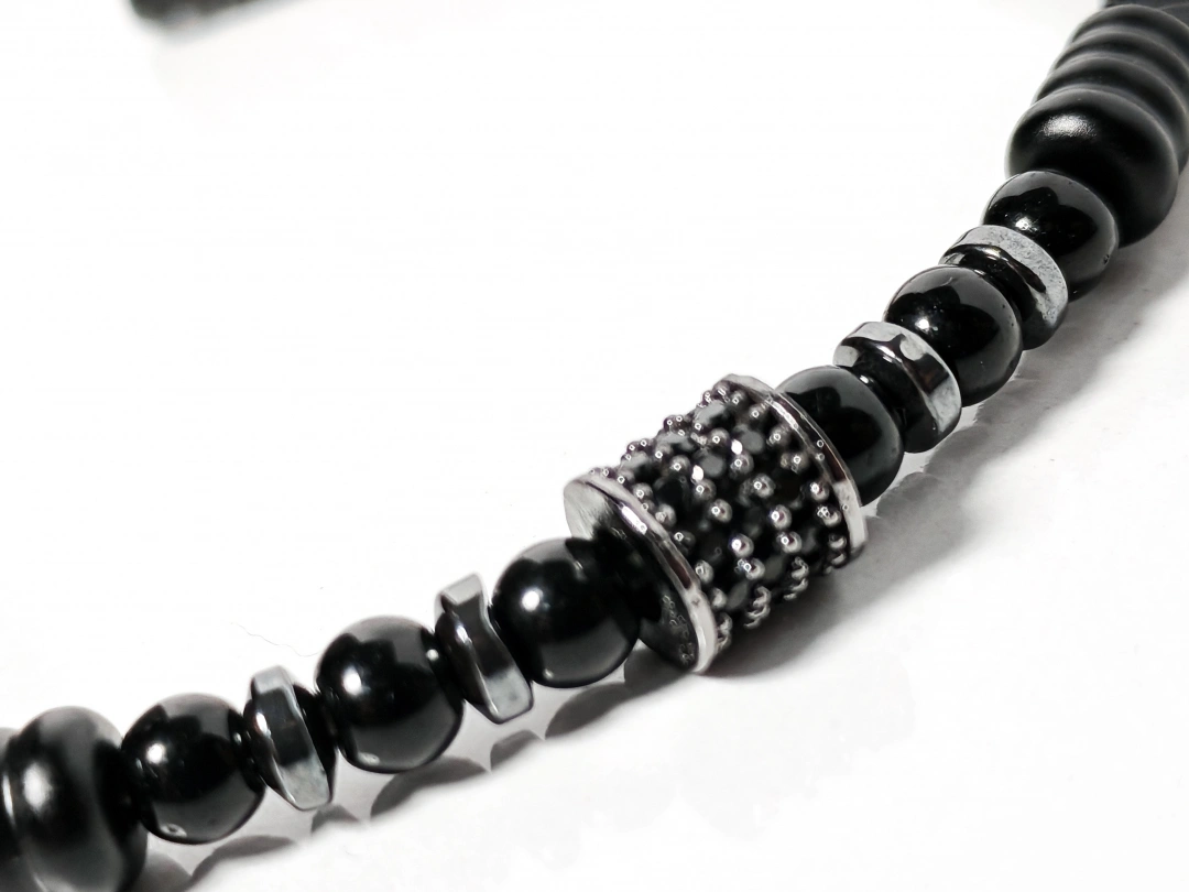 Şık tasarımı, kaliteli malzemesi ve rahat kullanımıyla siyah örgü deri ve zirkon, hematit, oniks taşlı bu bileklik, kendiniz için olduğu kadar anlamlı ve zarif bir hediye alternatifi olarak da tercih edilebilir.