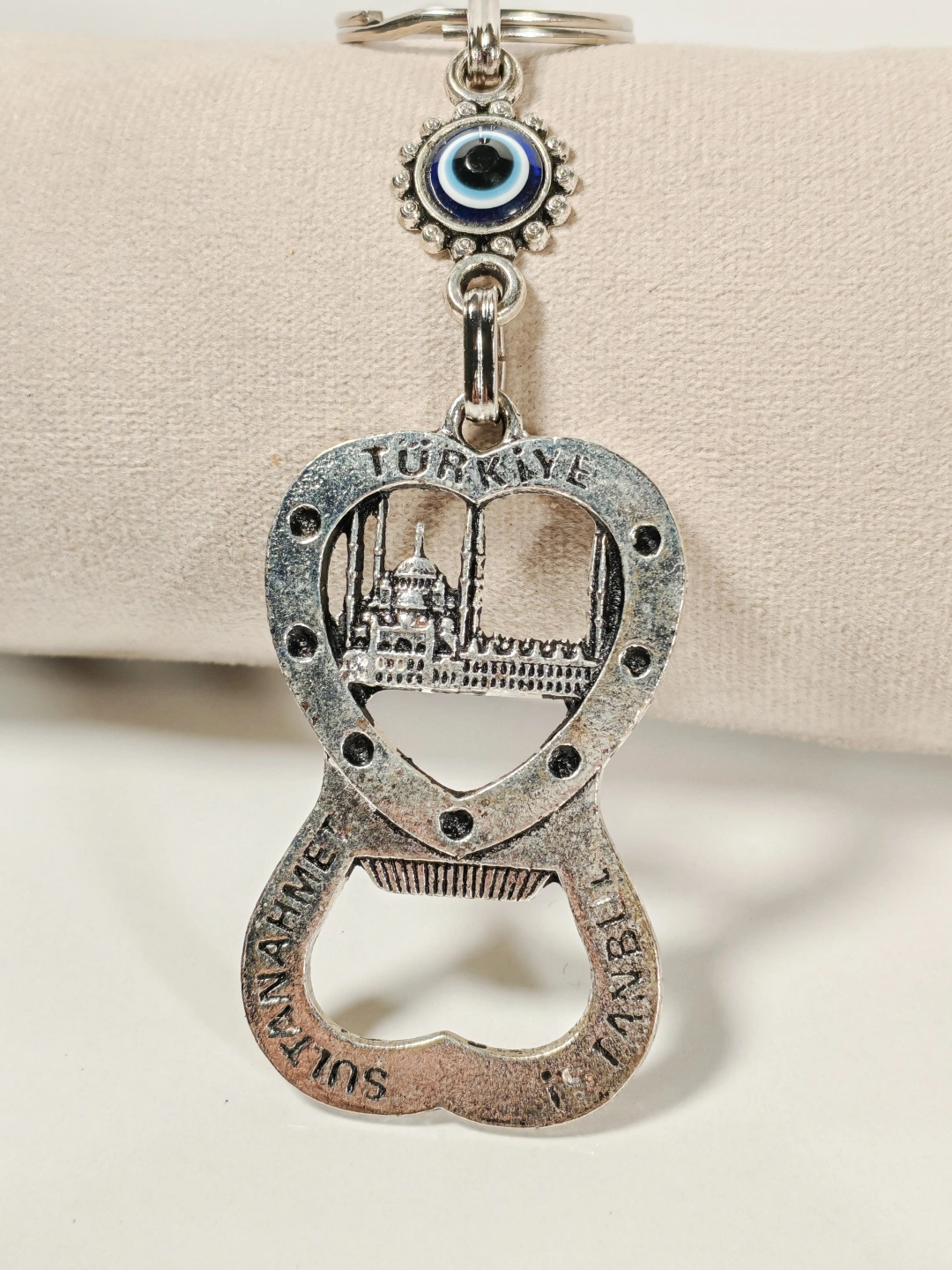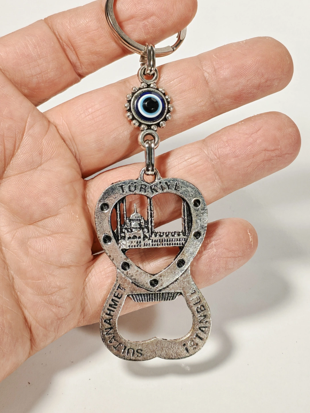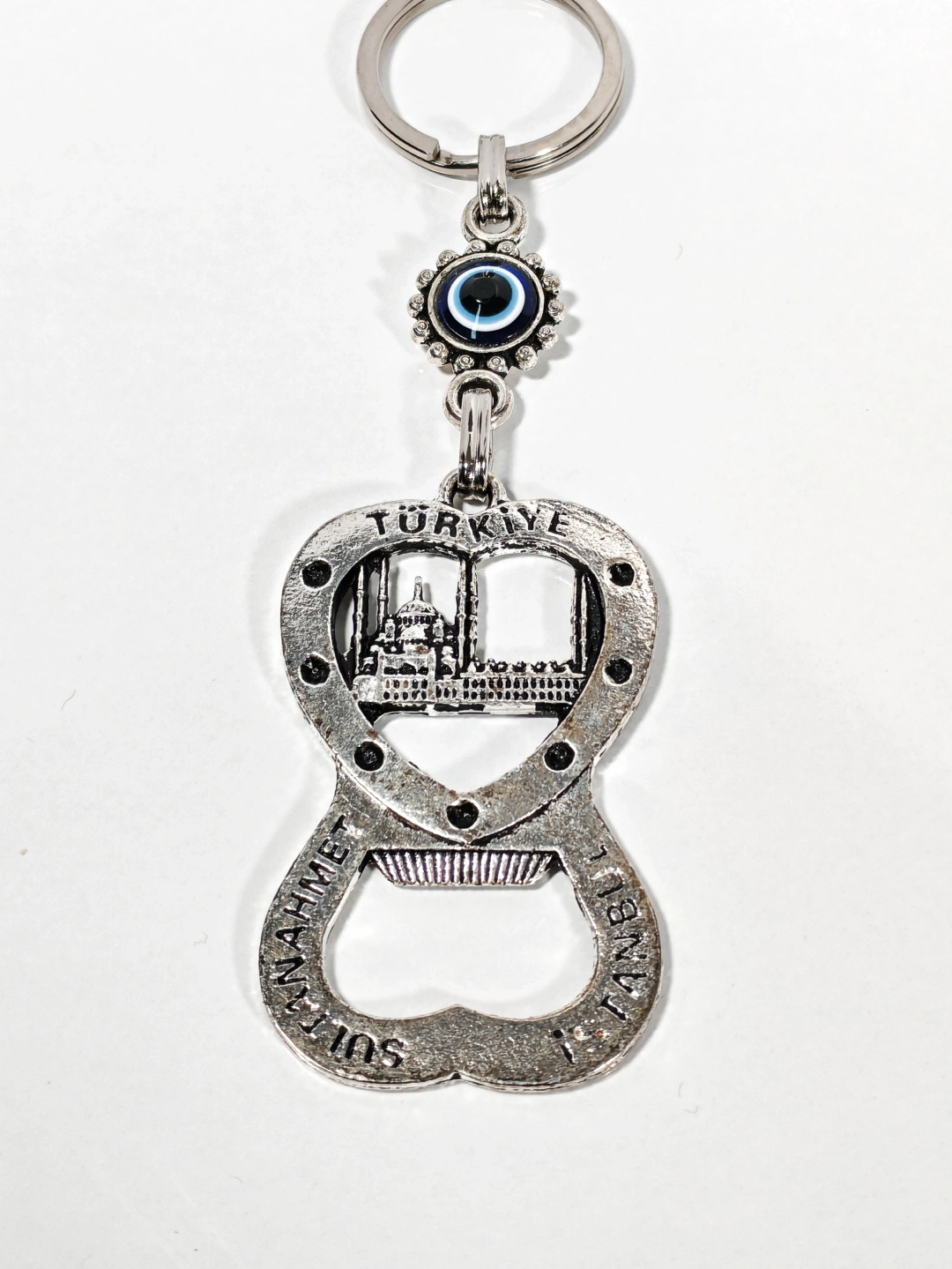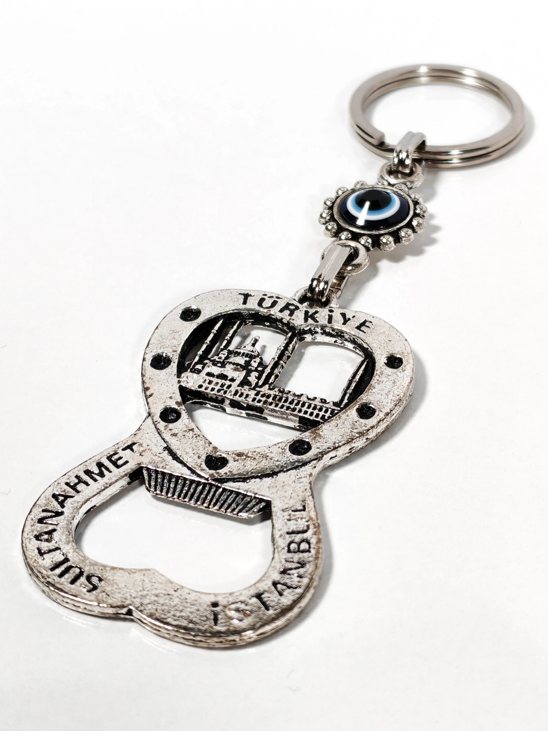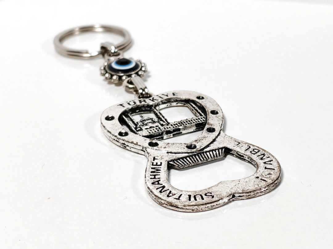 Kaliteli metal malzemeden üretilen anahtarlık, detaylı Sultanahmet temasıyla dikkat çeker. Sağlam yapısı sayesinde uzun süreli kullanım sunarken, metal yüzeyi estetik ve dayanıklı bir görünüm sağlar. Açacak fonksiyonu, günlük kullanımda pratiklik kazandırır ve ürünü sadece dekoratif değil, aynı zamanda işlevsel bir aksesuar hâline getirir.