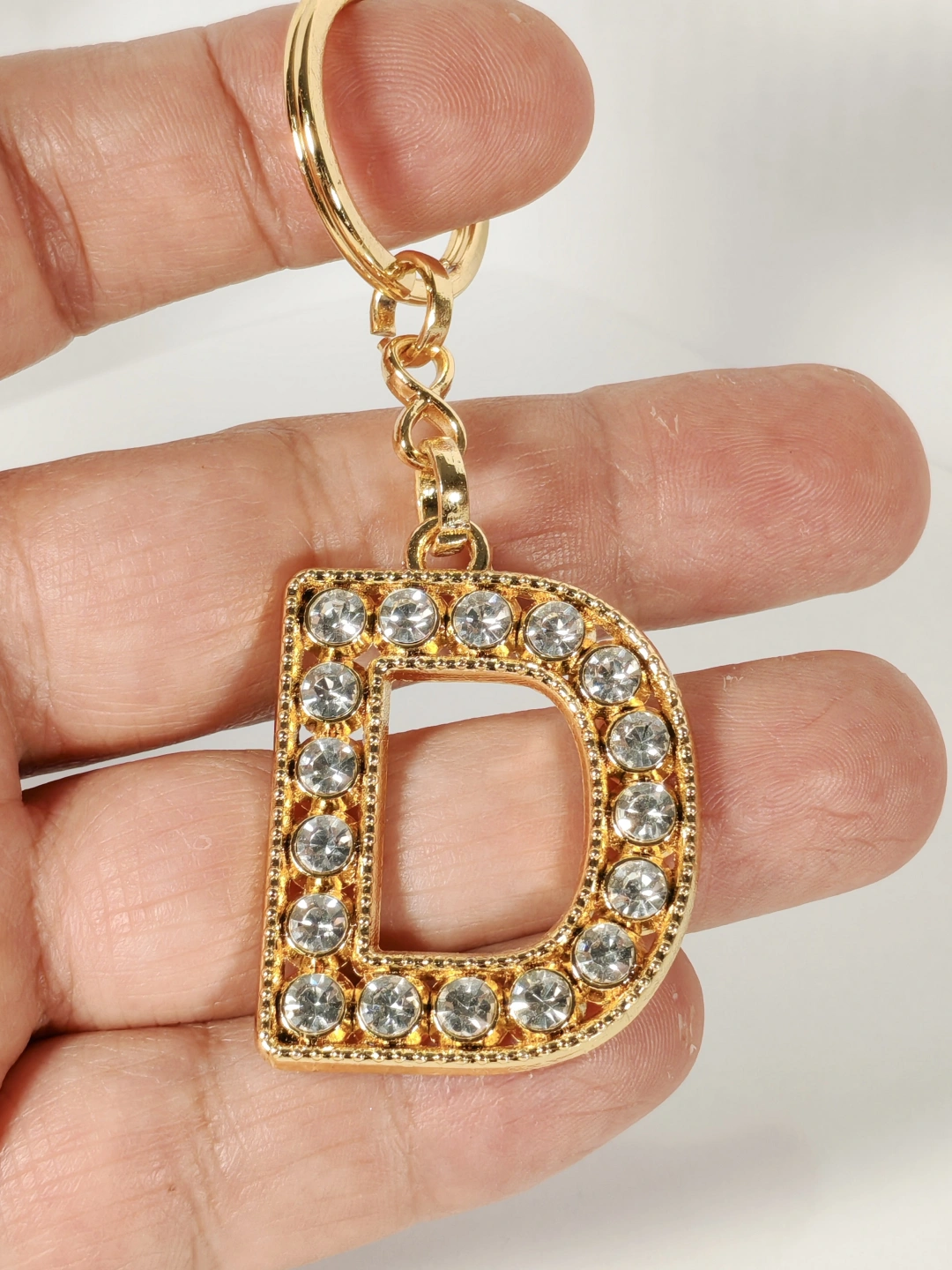 Taşlı D Harfi Gold Metal Anahtarlık – Kişisel Anlam, Zarif Işıltı ve Şık Tasarım