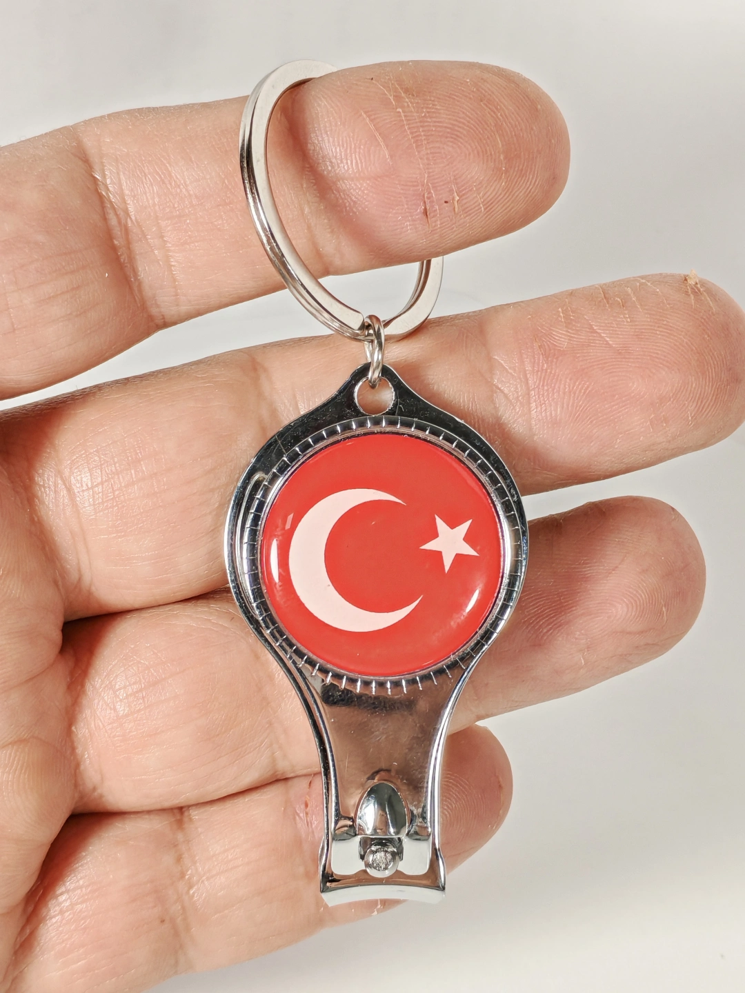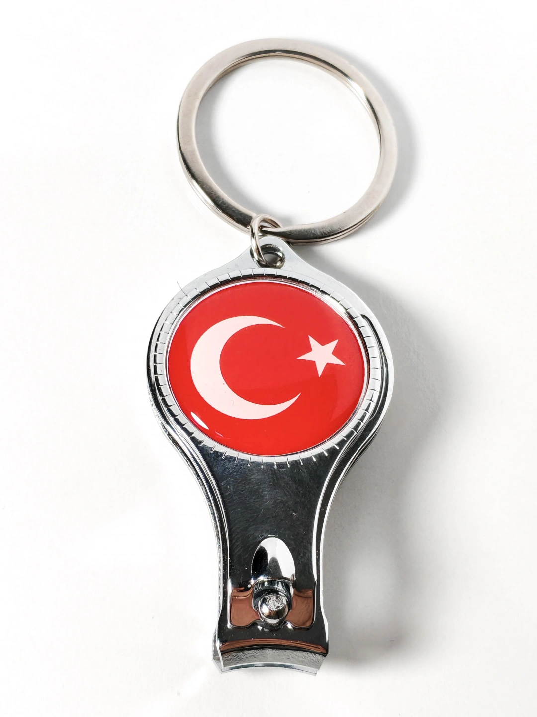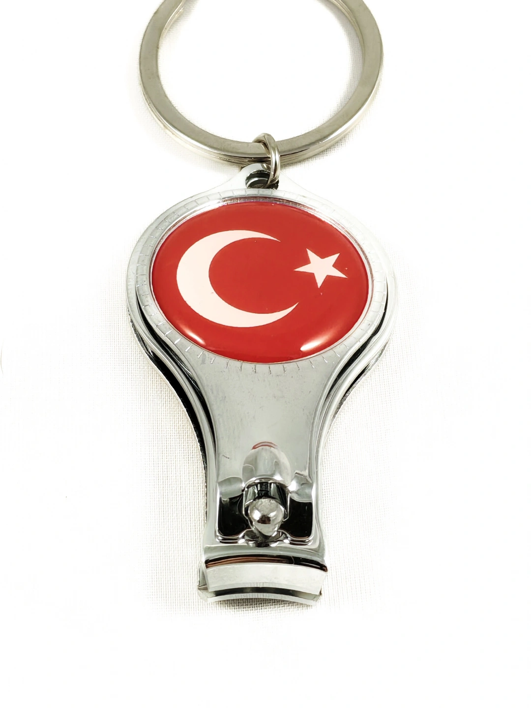 Dayanıklı metal malzemeden üretilen anahtarlık, uzun ömürlü ve sağlam bir kullanım sunar. Tırnak makası kısmı pratik şekilde açılıp kapanabilir yapısıyla kolay kullanım sağlar. Anahtarlar, çantalar veya araç anahtarlarında rahatlıkla taşınabilir; yer kaplamadan fonksiyonel bir çözüm sunar. Türk bayrağı deseninin metal yüzeyle uyumu, ürüne şık ve dikkat çekici bir görünüm kazandırır.