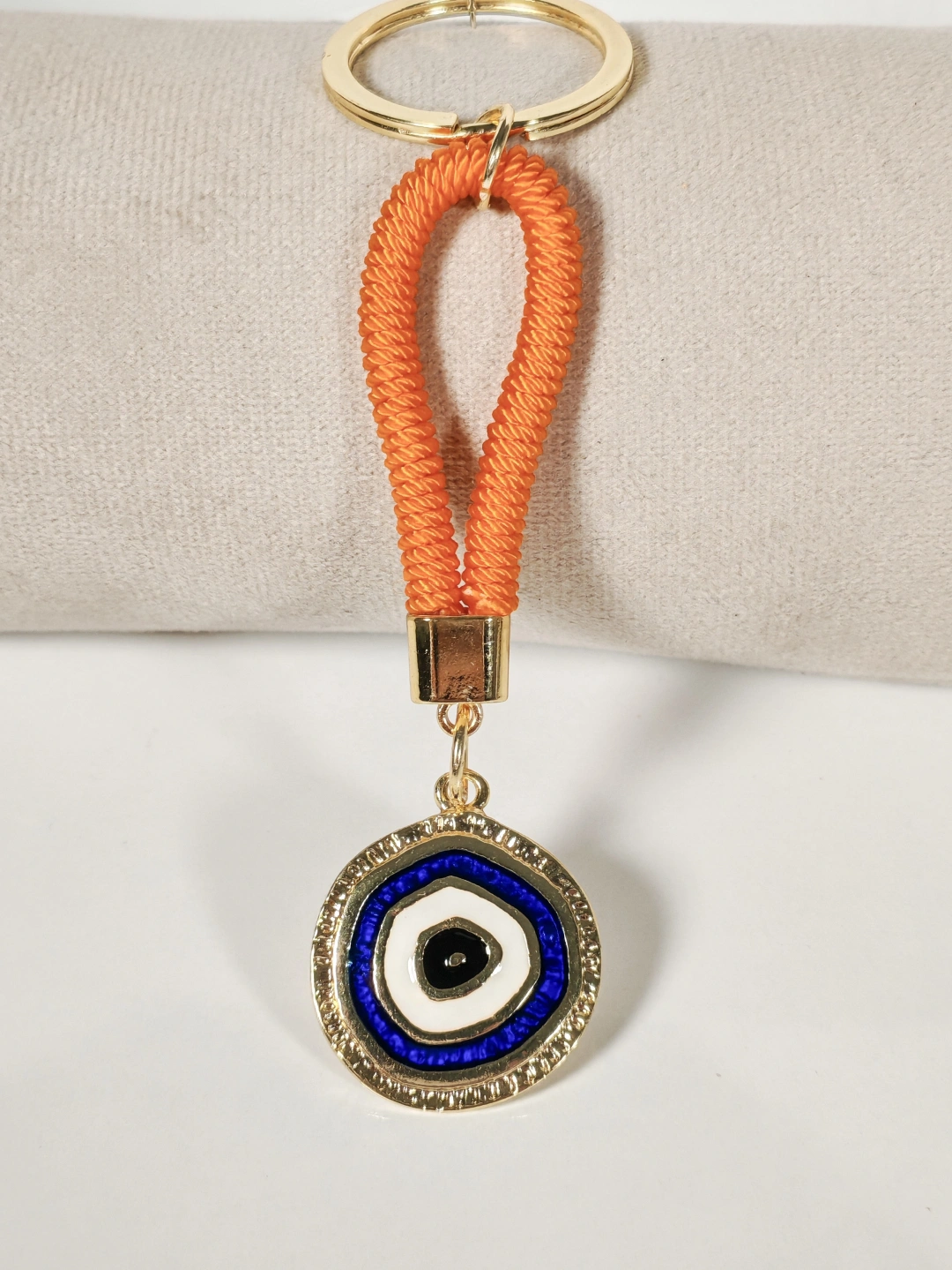 Turuncu İpli Nazar Boncuğu Detaylı Metal Anahtarlık – Şık, Anlamlı ve Dikkat Çekici Tasarım