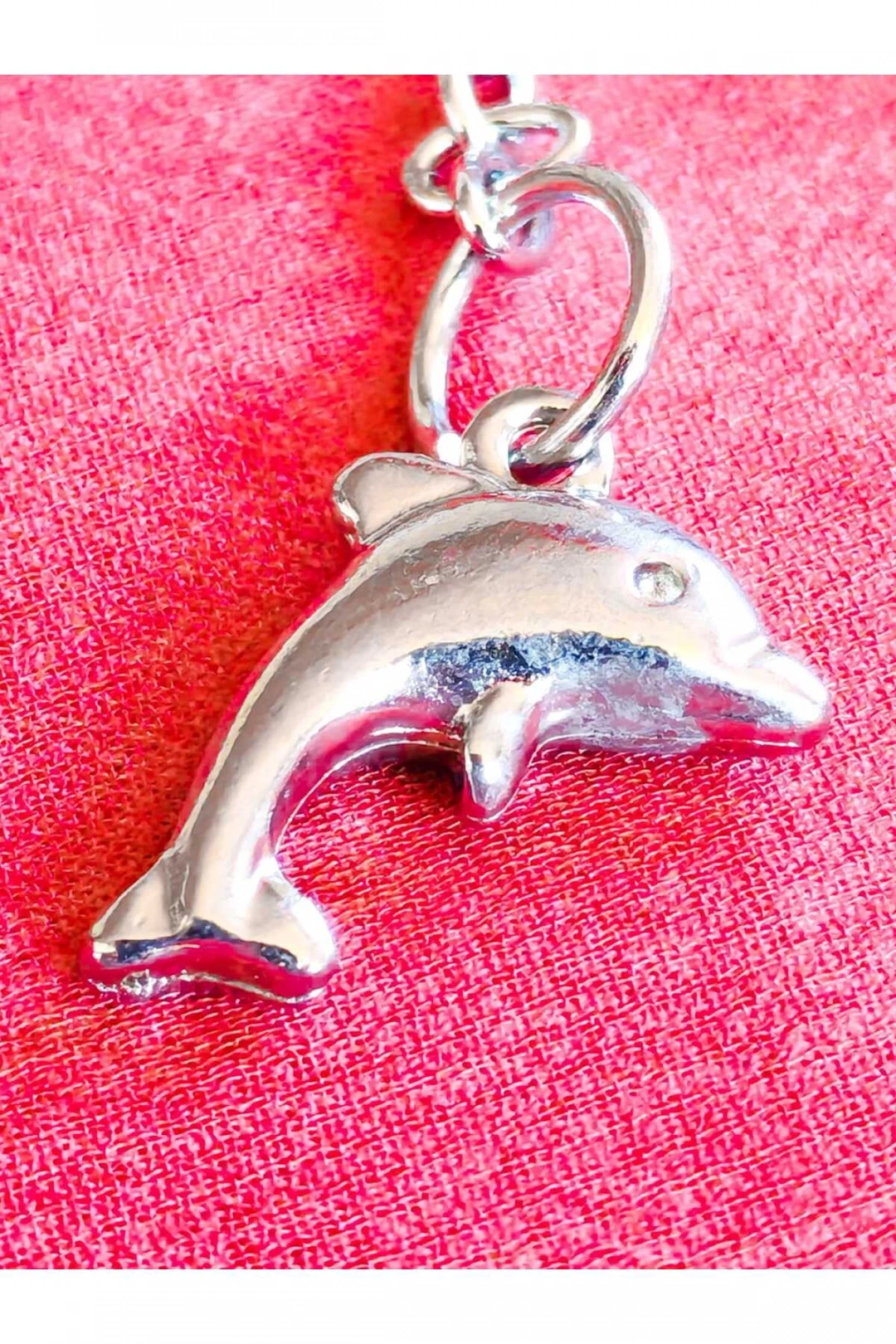 Üzeri taş süslemeli kalp figürü ve zincir ucunda yunus tasarımı