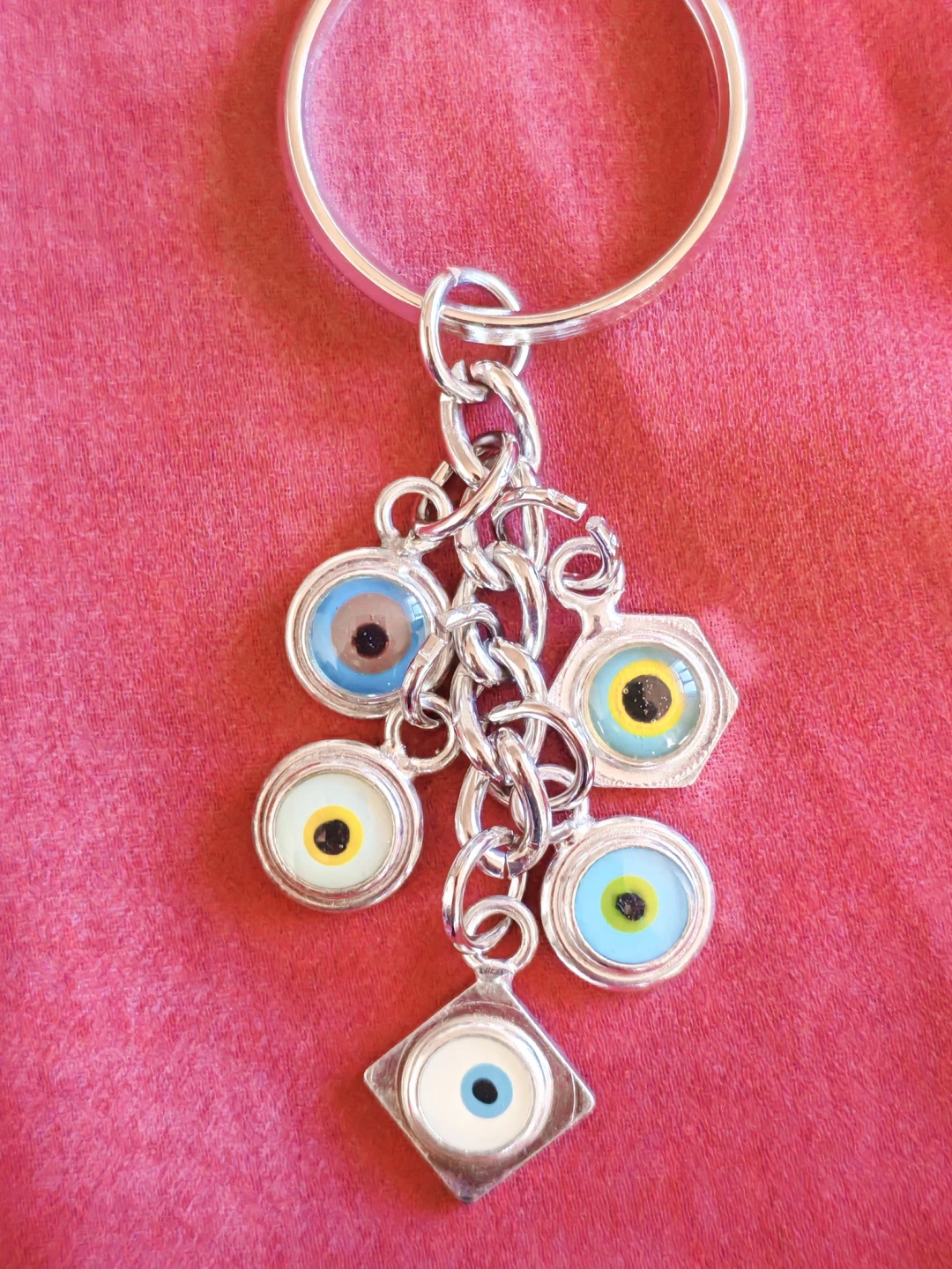 Dayanıklı metal yapısı ve kaliteli cam detaylarıyla uzun yıllar kullanılabilecek bu anahtarlık, kötü enerjilere karşı koruyucu bir simge olarak da tercih edilebilir. Küçük olmasına rağmen özenli işçiliğiyle fark yaratan bu tasarım, hem kendiniz için hem de sevdiklerinize hediye edebileceğiniz anlamlı bir parça olur.